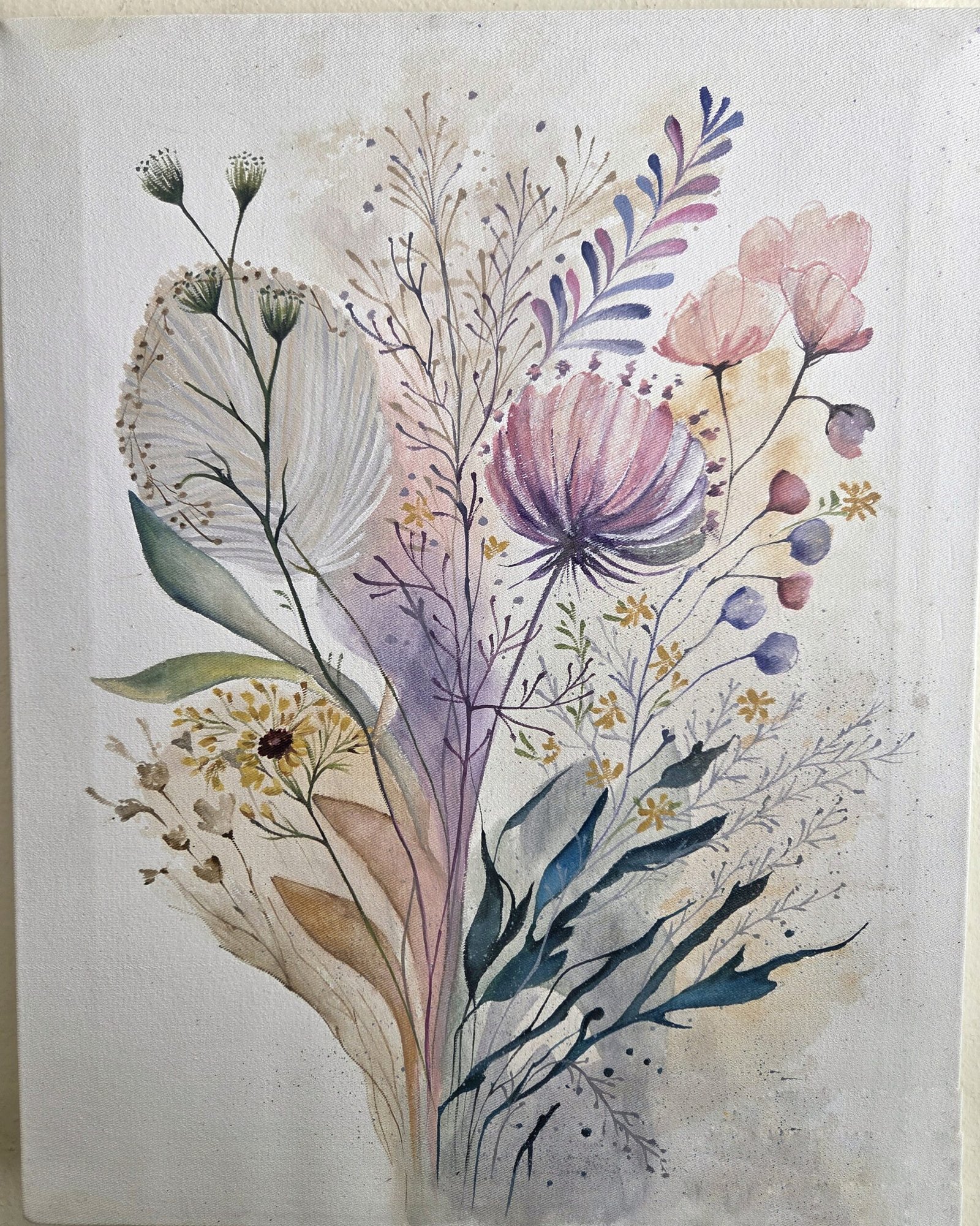 Cuadro bastidor pintado a mano en acuarelas de 40 cm x 50 cm.