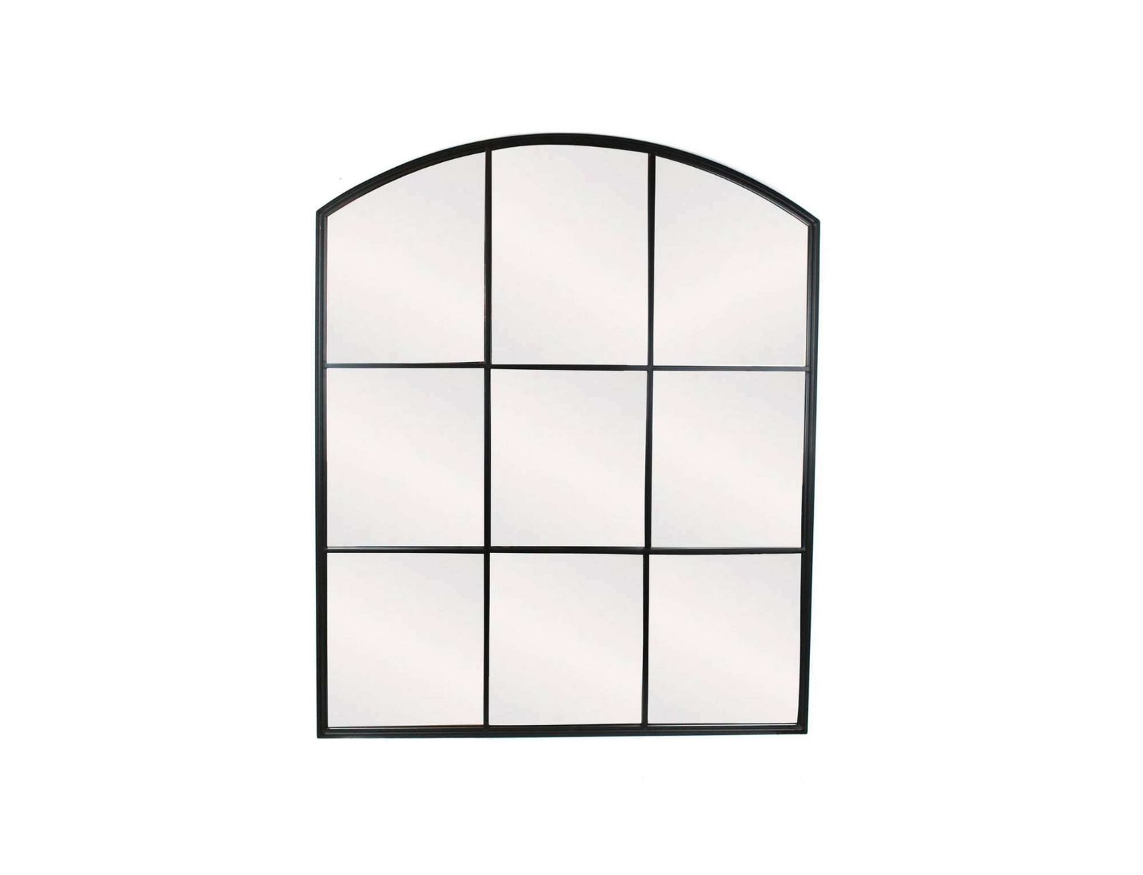 Espejo decorativo de estilo industrial con diseño tipo ventana, elaborado en metal negro y dividido en paños que aportan estructura, personalidad y un toque arquitectónico al ambiente.