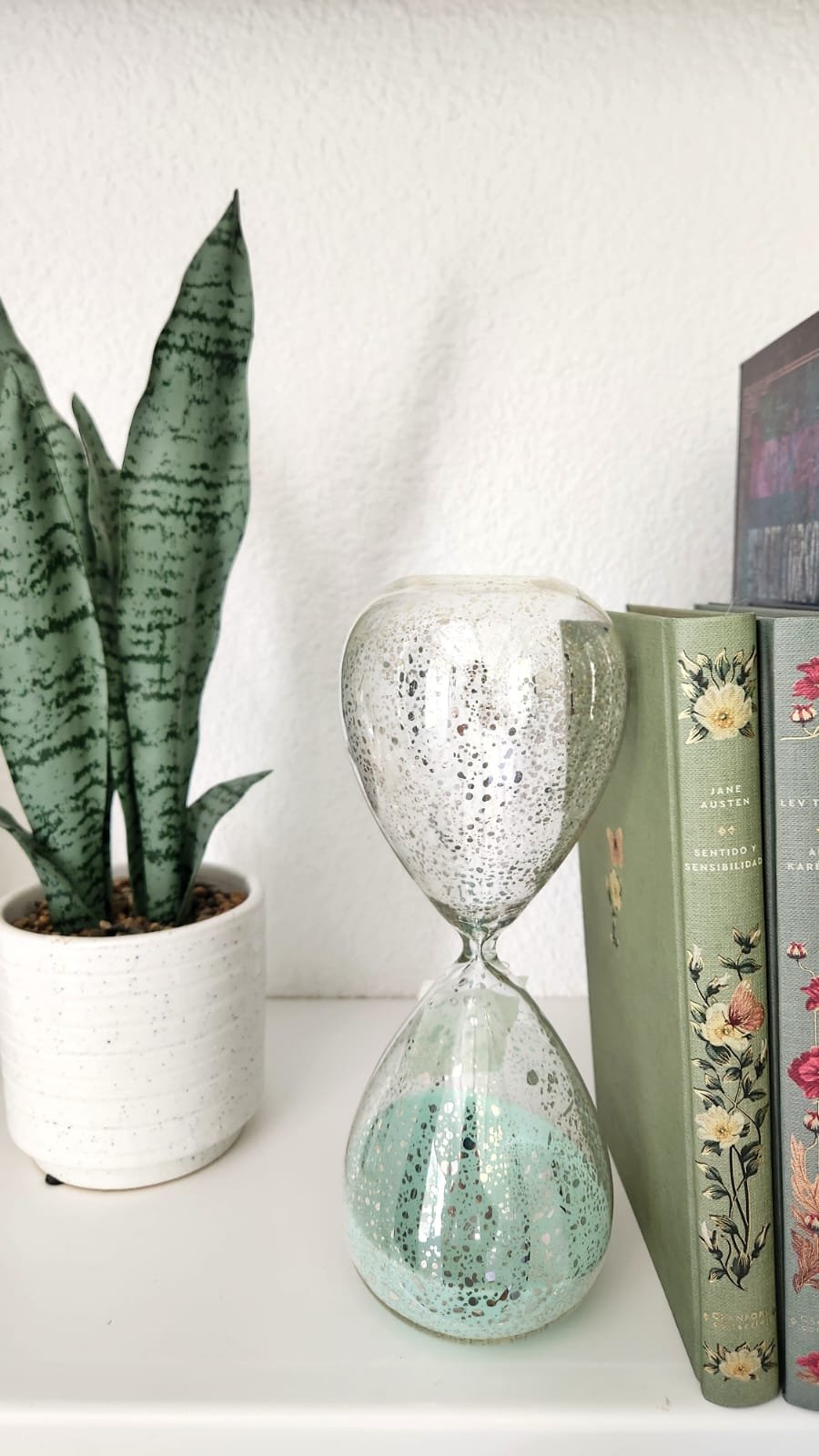 Reloj de arena decorativo con diseño delicado y moderno.